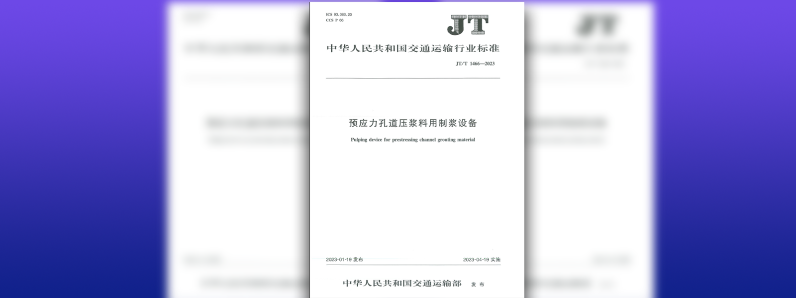 行業(yè)標準計劃《預應力孔道壓漿料用制漿設備》JT/T 1466-2023于2023年1月19日發(fā)布,2023年4月19日實施。...